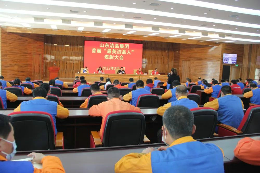 2022年3月7日,潔晶集團召開首屆“最美潔晶人”表彰大會,集團領導為獲此榮譽的職工頒發獎杯和證書。